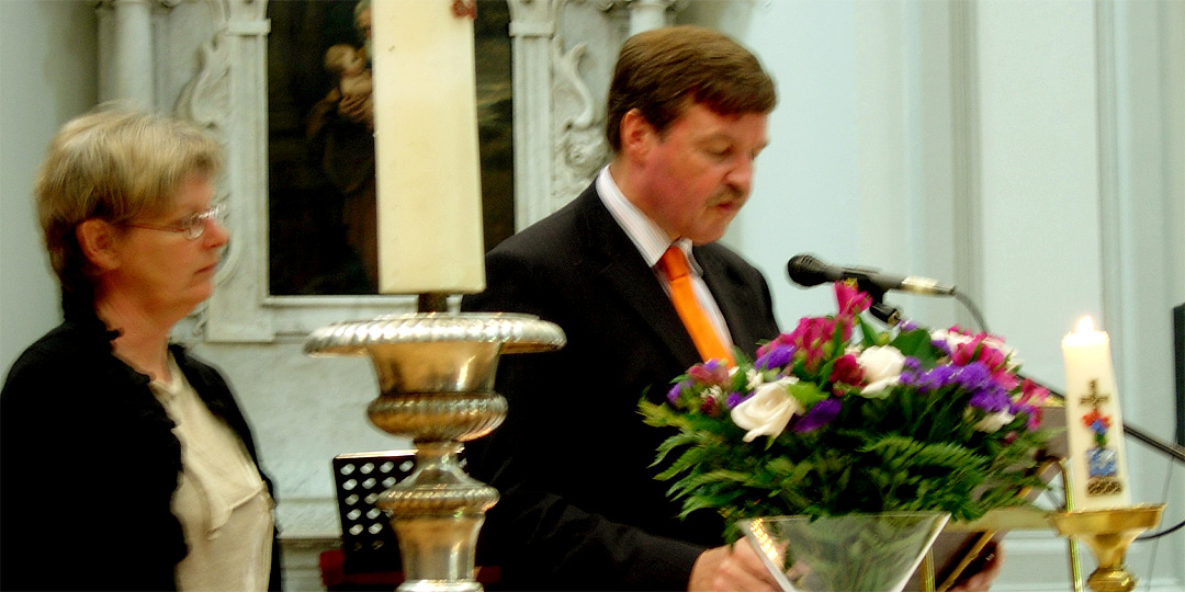 Wìj komen hier om op een bepaalde manier geïnspireerd te worden en iets van die teksten te leren. Niet alleen door een woord, dan heb je soms aan een boekje genoeg; niet in een lied of een overweging. Nee, sámen – komen heeft een toegevoegde waarde van: er mèt en vóór elkaar te zijn. Sámen het pad te lopen; de zoektocht naar geborgenheid in elkaar en in God. Als die zoektocht een vindtocht wordt, delen we zachtmoedig in vrijheid en vrede. Is dat toch zoiets als “verzusteren” en “verbroederen”? Dan gaan mensen twee-aan-twee, zowel door overvloed als woestijn. Moge dit godshuis een halteplaats – een vindplaats – zijn waar we andere mensen worden en van waaruit we anders naar huis gaan dan we gekomen zijn.
