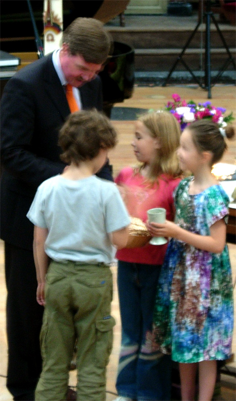 Tot slot: ook een speciaal welkom aan de kinderen, die er vandaag weer bij zijn. Nog twee weekjes en dan hebben jullie ook vakantie. Fijn dat jullie er zijn ! Wij hebben bij de grote mensen een verhaal over Jezus God – de Vader bedankt en daar hebben jullie het vandaag ook over. Fred/Freek gaat het vertellen. Komen jullie naar voren?