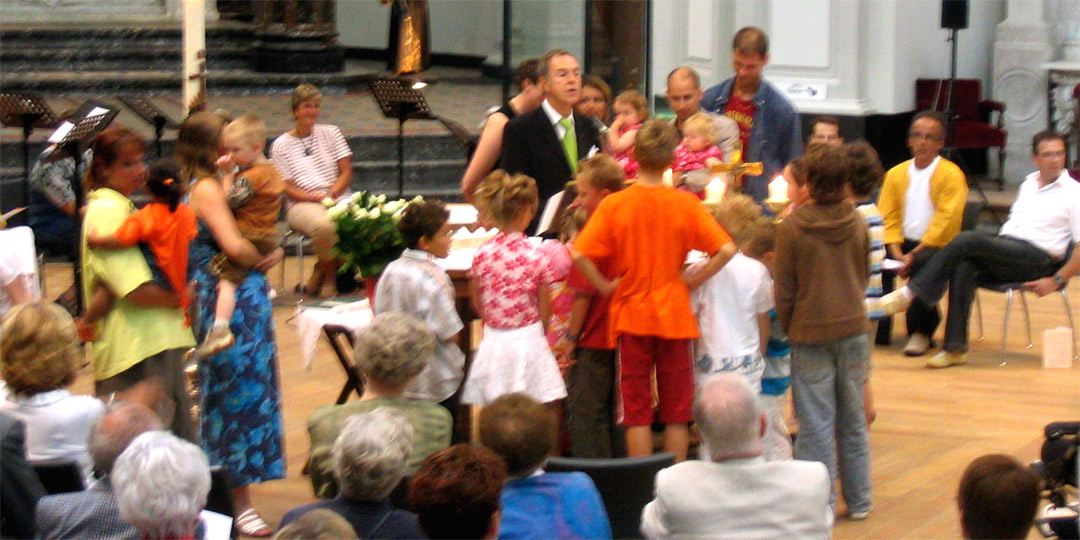 Voorganger: Jos Brink Lector: Rob en Ilze de Ruiter. Doop van hun kinderen: Willemijn en Janneke de Ruiter |