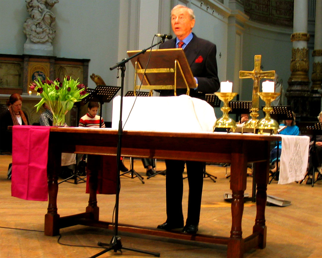Wij herdenken deze viering het plostelinge overlijden van Rob Everard, begin januar 2006. (Ton W.) Het is vandaag de 1 ste zondag van de Vastentijd, de jaarlijkse 6 weken ter voorbereiding van het Hoogfeest van Pasen, 6 weken van inkeer en bezinning. Op uw boekje voor de liturgie van vandaag staat tevens dat we vandaag ook Rob Everard gedenken. Daar wilde ik maar even mee beginnen. Wij waren met velen van De Duif aanwezig bij de afscheidsviering, waarbij mooie woorden aan Rob werden besteed, o.a. dat Rob met name zeer betrokken was bij de nieuwe kapel van het OLVG en de Sint Nicolaaskerk, beide kerken waar hij graag kwam. Verder niets over De Duif. Wij, die er met veel duifmensen bij aanwezig waren, wij voelden dat er hier iets niet klopte. Wij zijn allemaal getuigen geweest dat Rob en Mithése in de dertig jaar van ons huidige bestaan zelden of nooit gemist werden bij onze vieringen en wij begrepen er niets van dat hun trouwe liefde voor dit huis met geen woord werd genoemd. Al gauw werd duidelijk dat ook mevr. Everard en haar dochters onze verbazing deelden en ons lieten weten dat het gebeurde op een misverstand berustte. Daarom deze speciale herdenking. Rob Everard was een godsdienstig man en in zijn karakter waren trouw en solidariteit daarmee innig verbonden. Met alle duifparochianen was hij verbitterd en verontwaardigd over het besluit in 1973 van het bisdom Haarlem om onze goede, oude Duifkerk te sluiten. Toen wij dan ook besloten de kerk te kraken en met de diensten voort te gaan, deden Rob en Mithèse vanzelfsprekend mee. Dat was voor hen een kwestie van rechtvaardigheid en solidariteit. Daarmede veranderde er voor hen niets aan hun bestaande relaties en hun belangstelling vanouds voor katholiek Amsterdam. Zij leefden natuurlijk mee met bouw van de nieuwe kapel van het OLVG en met de restauratie van de sint Nicolaaskerk, waar zij graag kwamen. Dat die belangstelling voor bepaalde figuren niet kan samengaan met de liefde voor De Duif is een nieuw fenomeen waar wij geen begrip voor hebben. Voor ons blijft Rob Everard dus een zeer gewaardeerd lid van onze Duifgemeente en in jarenlange herinnering zal hij en zijn gezin een warme plaats blijven innemen.